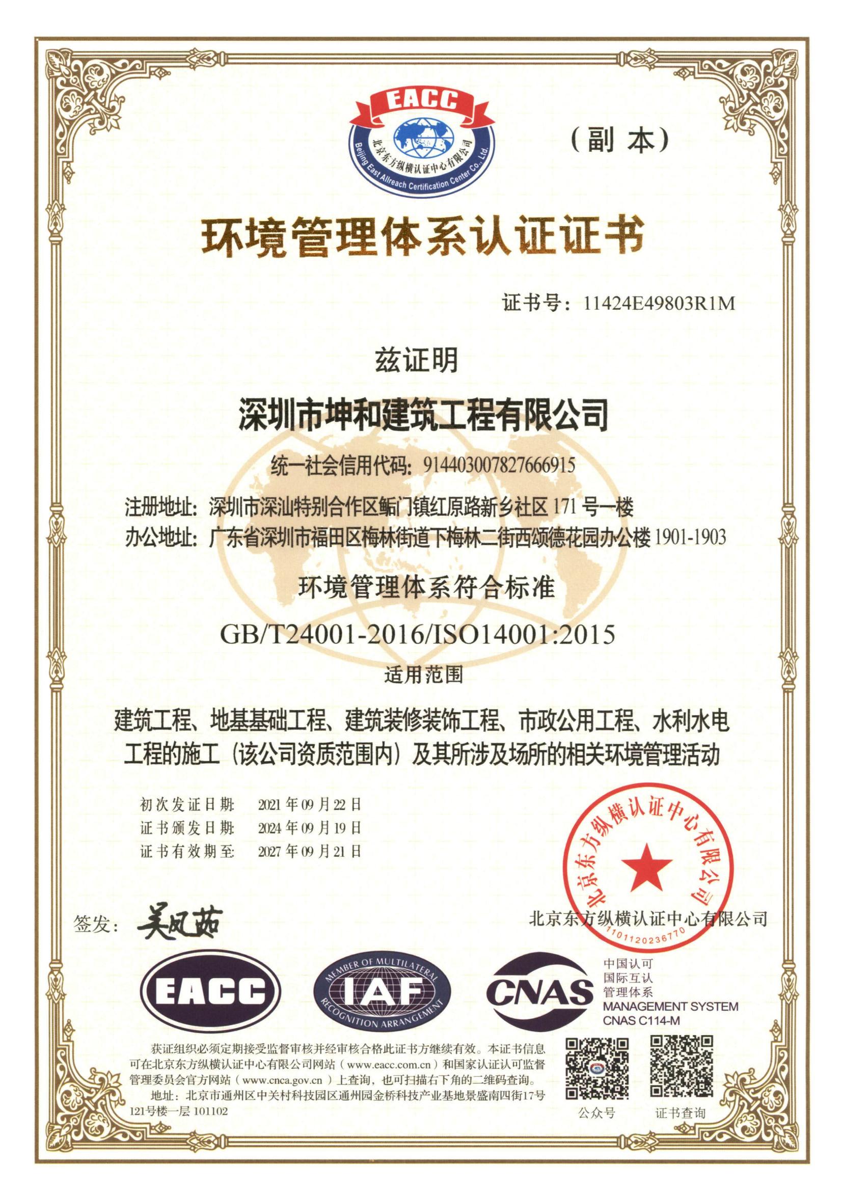 • ISO環境管理體系認證